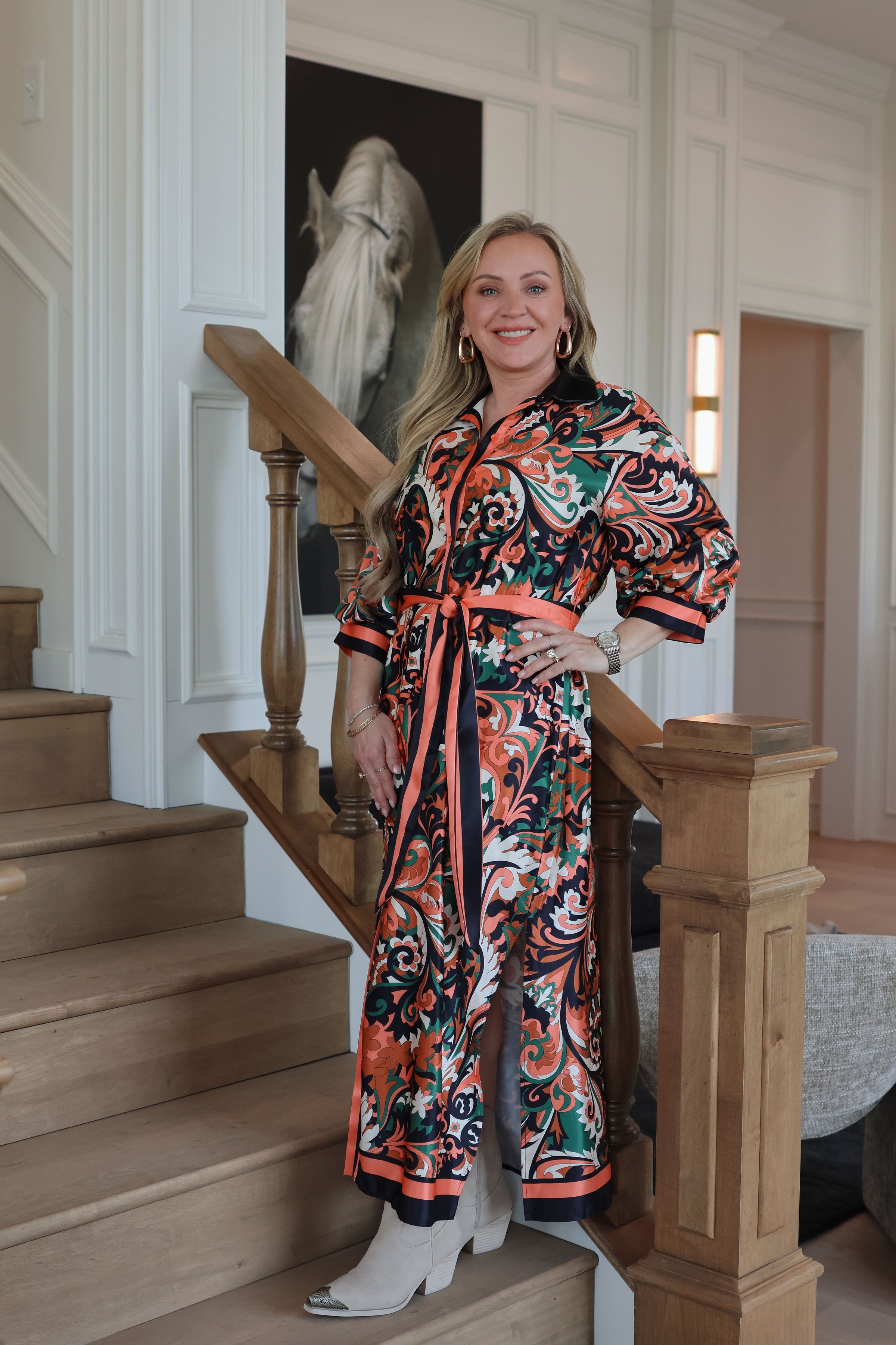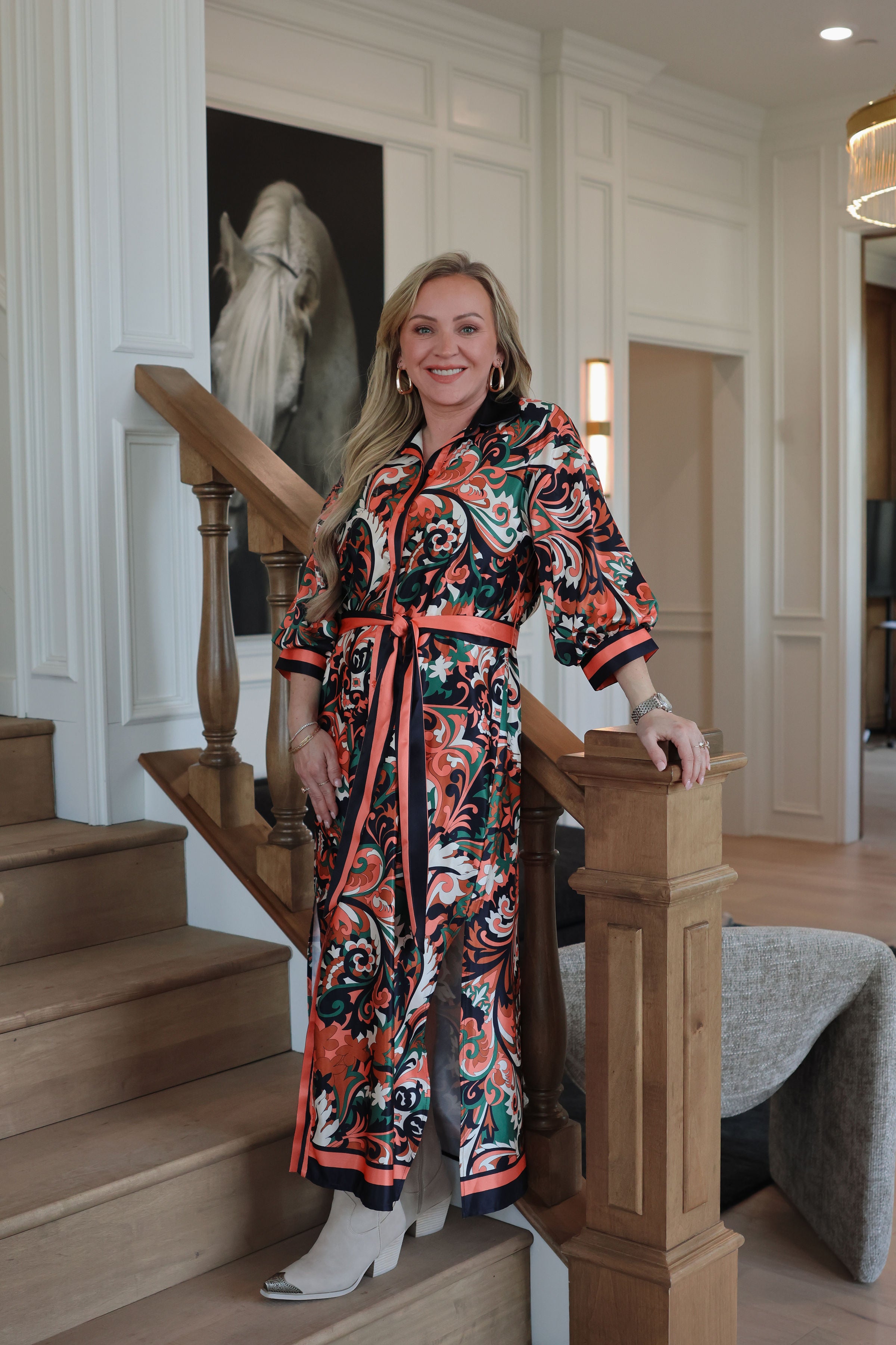 Autumn Scroll Maxi Shirt Dress