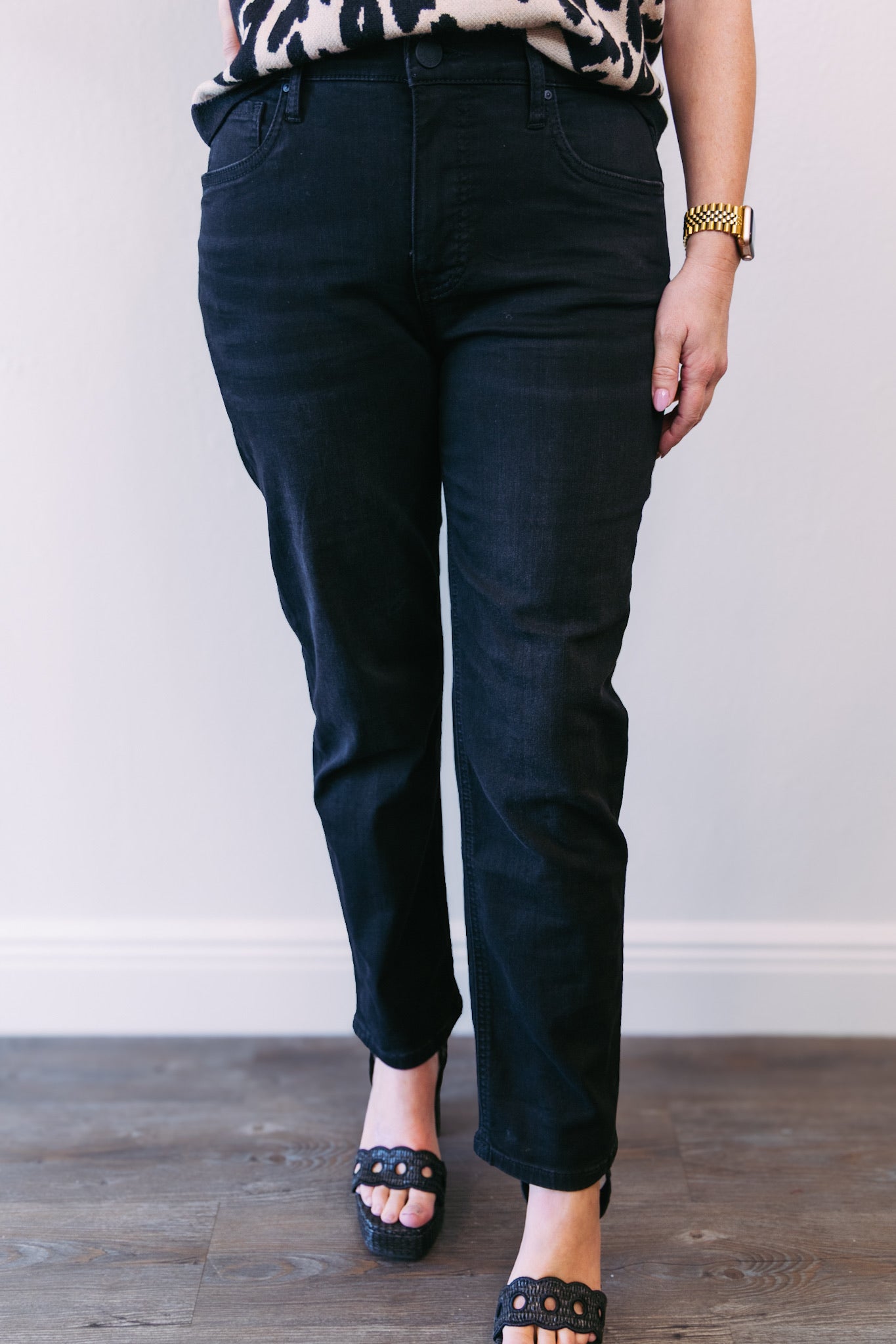 [KUT] Rachael High Rise Mom Jean - Black Uplifting