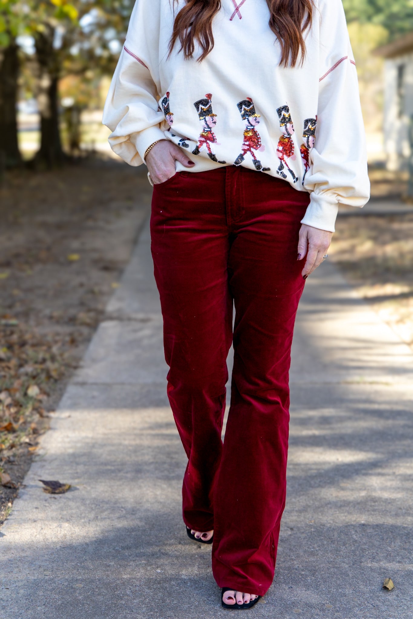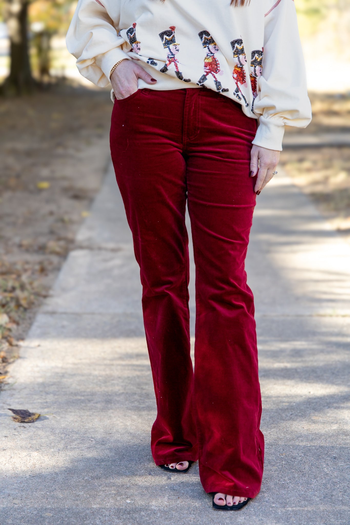 [Dear John] Rosa Mid Rise Full Inseam Pants - Burgundy Velveteen