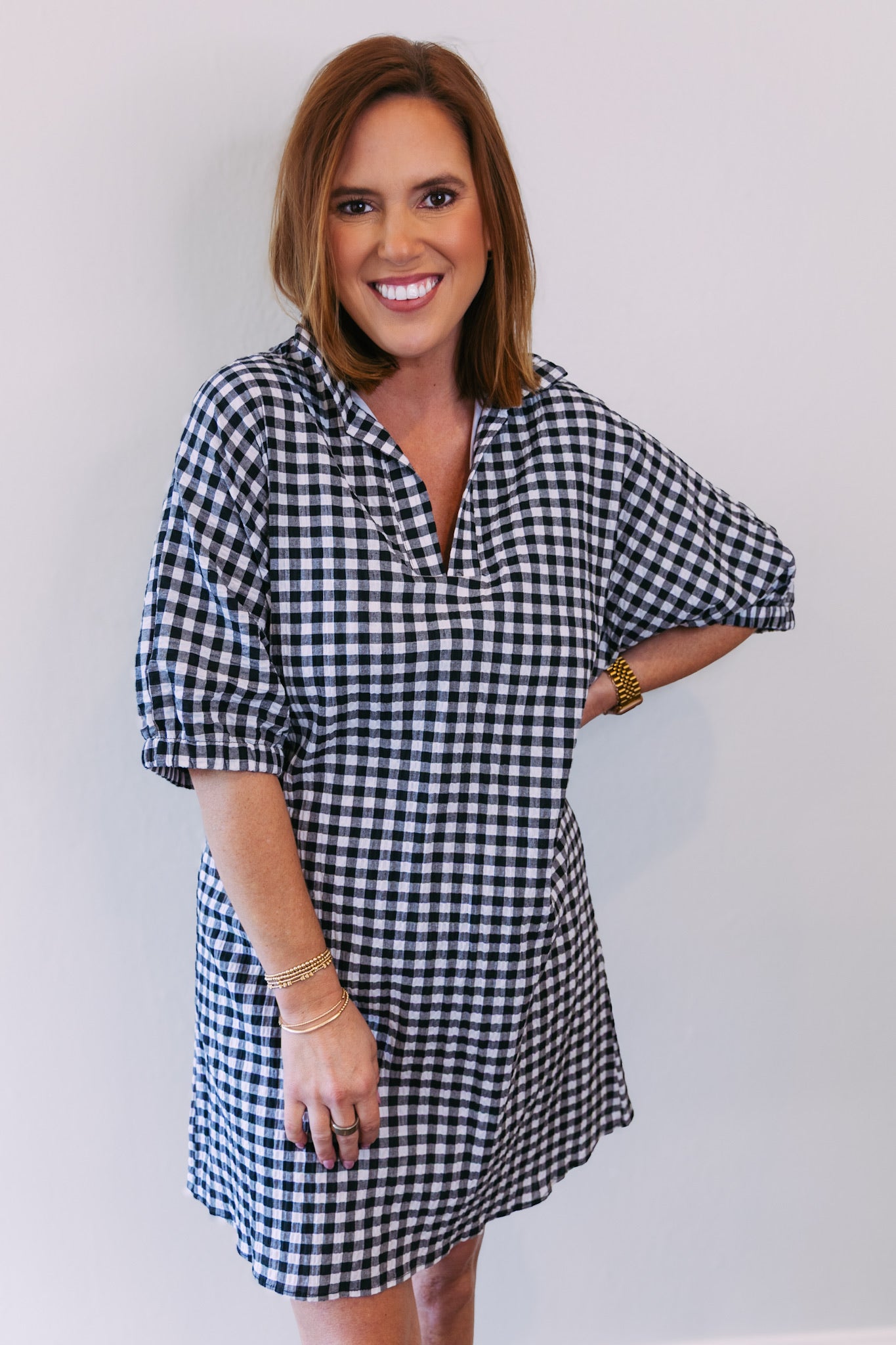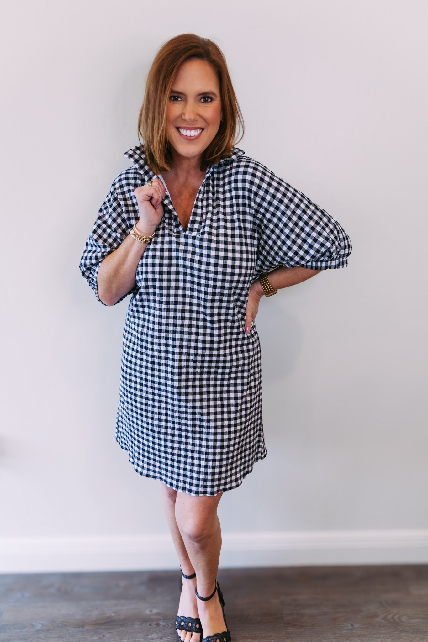 Charlotte Collared Dress - Black Seersucker Gingham