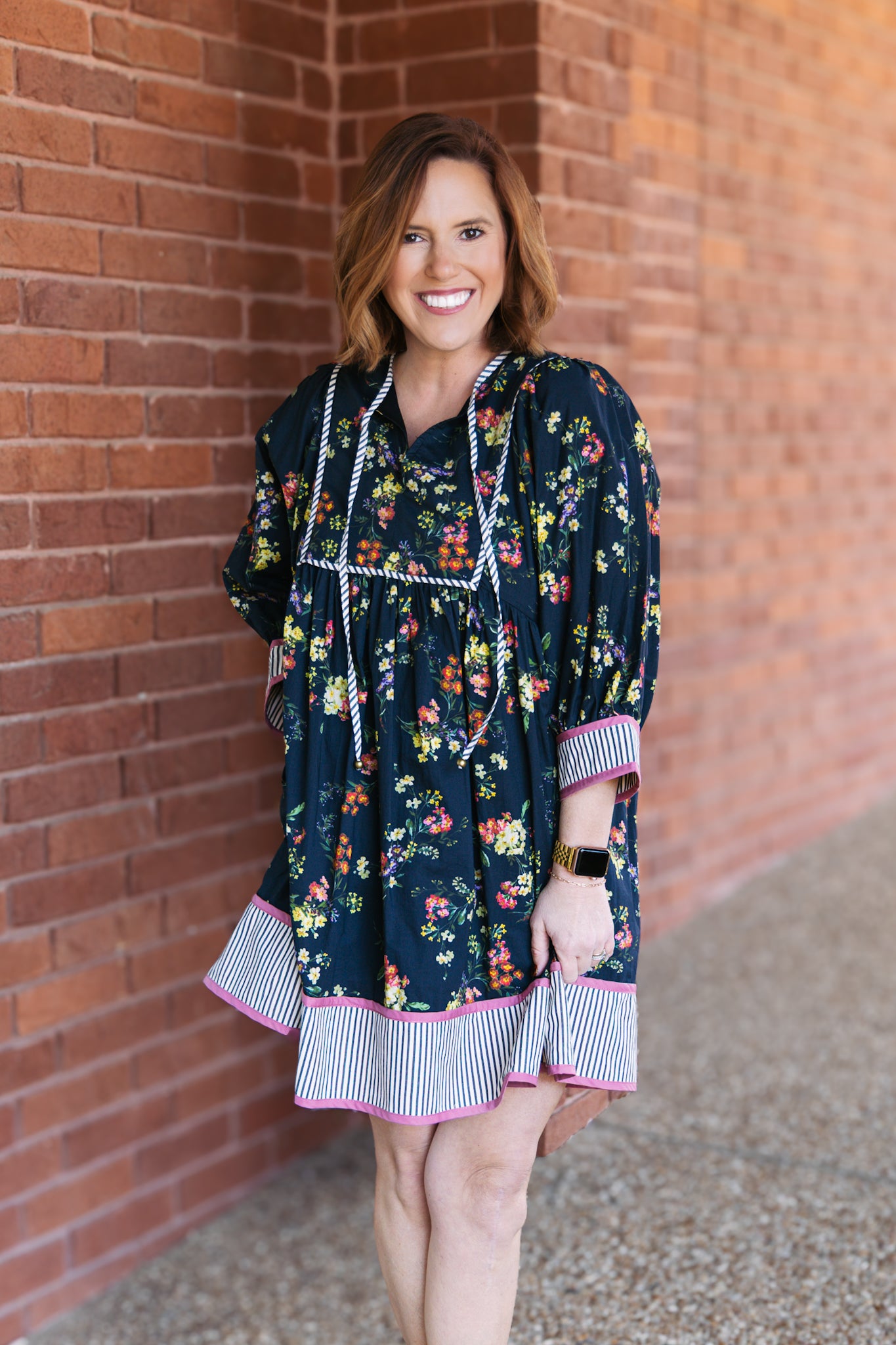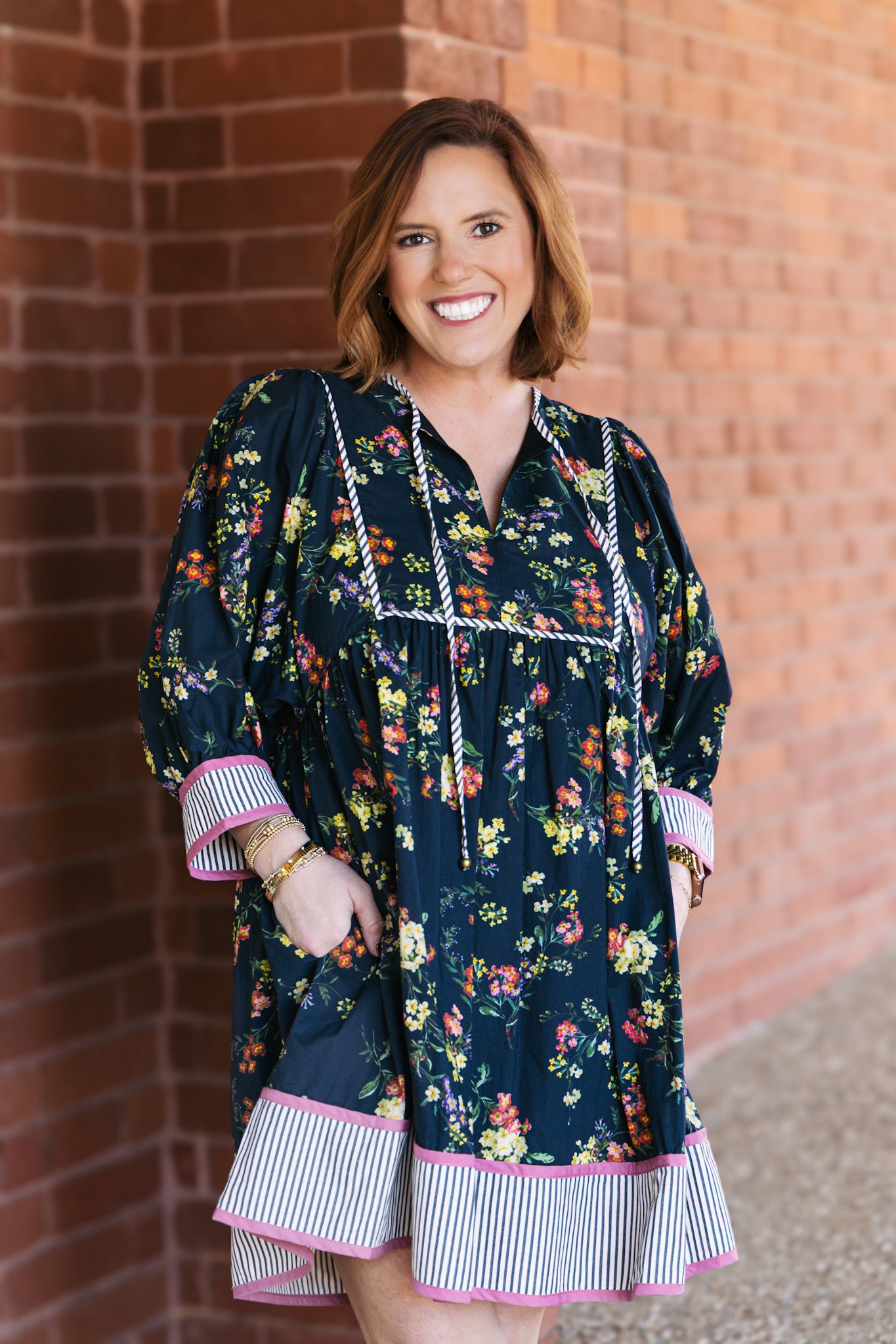 Curvy Mirna Botanical Print Midi Dress - Slate Blue