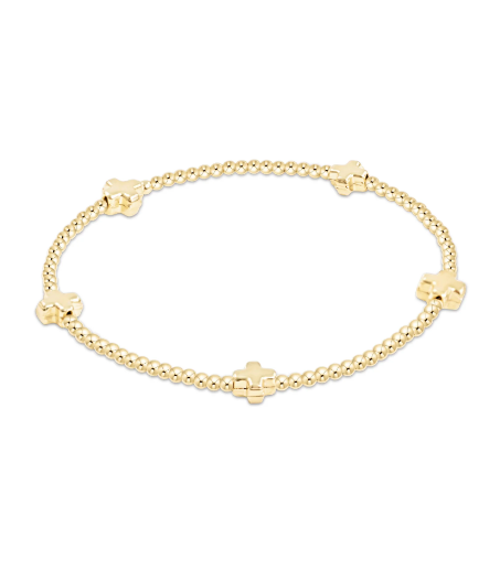 e girl Signature Cross 2mm Bead Bracelet - Gold
