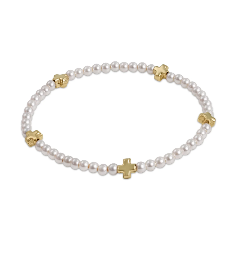 e girl Signature Cross Small 3mm Pearl Bracelet - Gold
