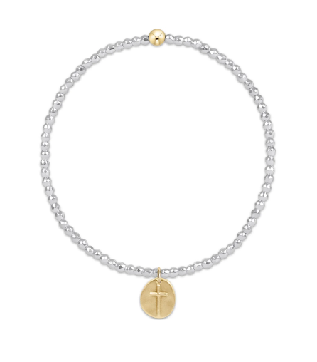 Faceted Hematite 2mm Bead Bracelet - Signature Cross Gold Charm