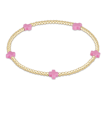 e girl Signature Cross 2mm Bead Bracelet - Bright Pink