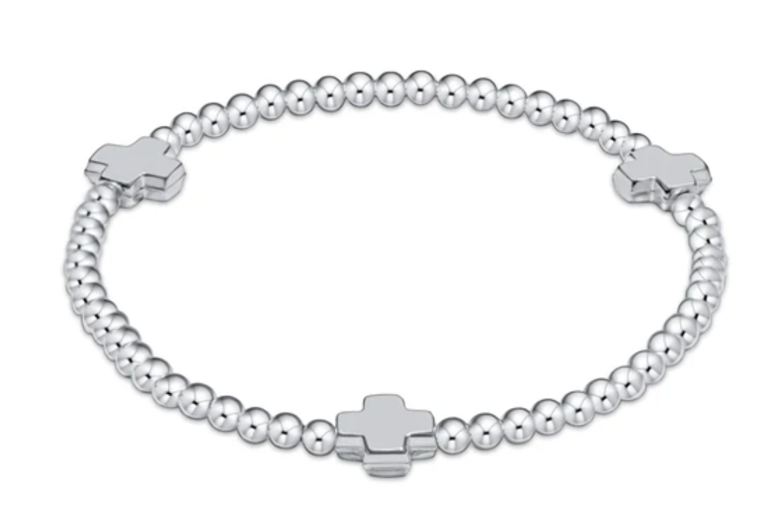 Extends Signature Cross Sterling Pattern 3mm Bead Bracelet - Sterling