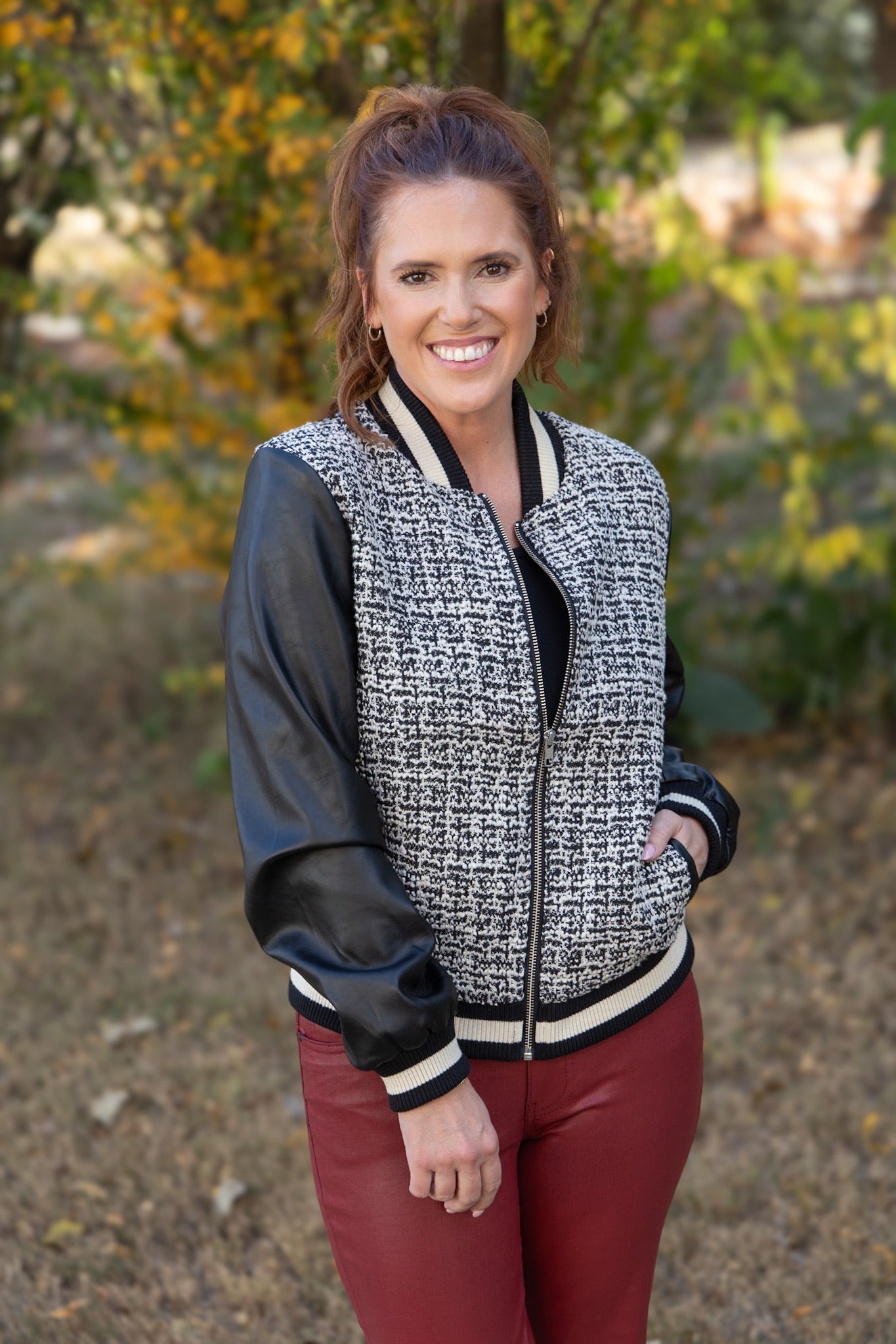 Janel Mixed Media Bomber Jacket
