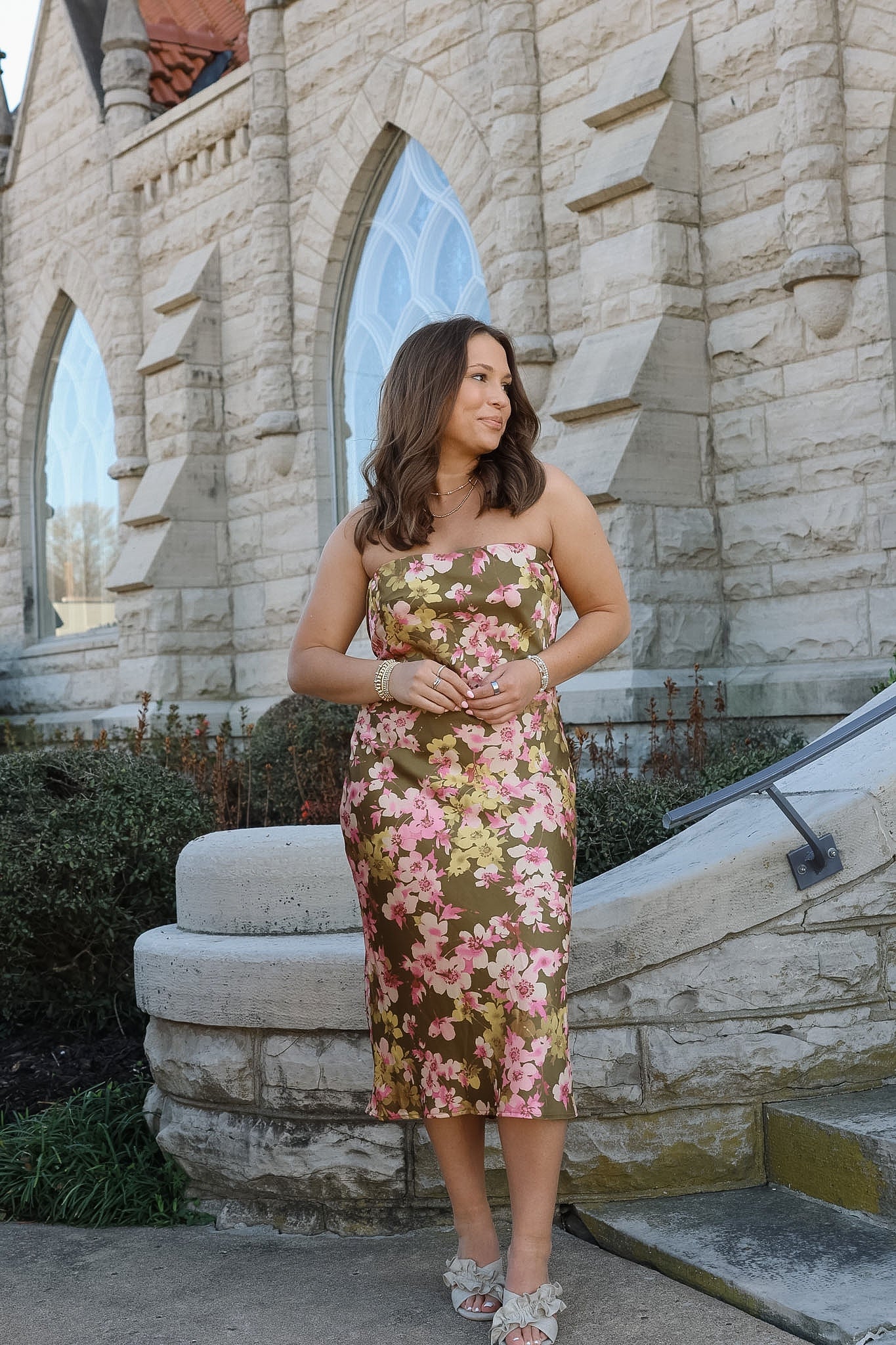 Satin Strapless Floral Midi Dress