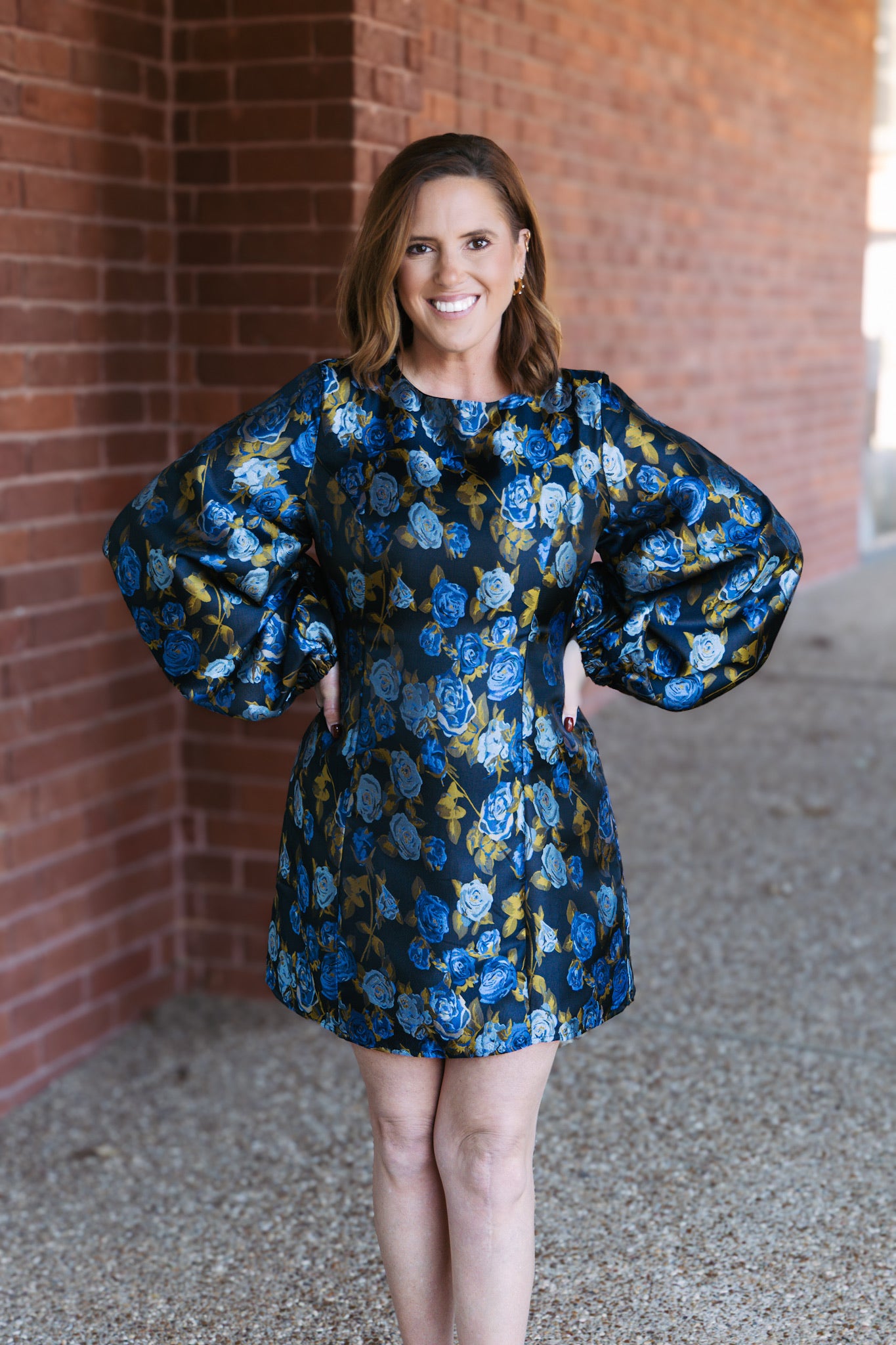 Rose Garden Balloon Sleeve Mini Dress