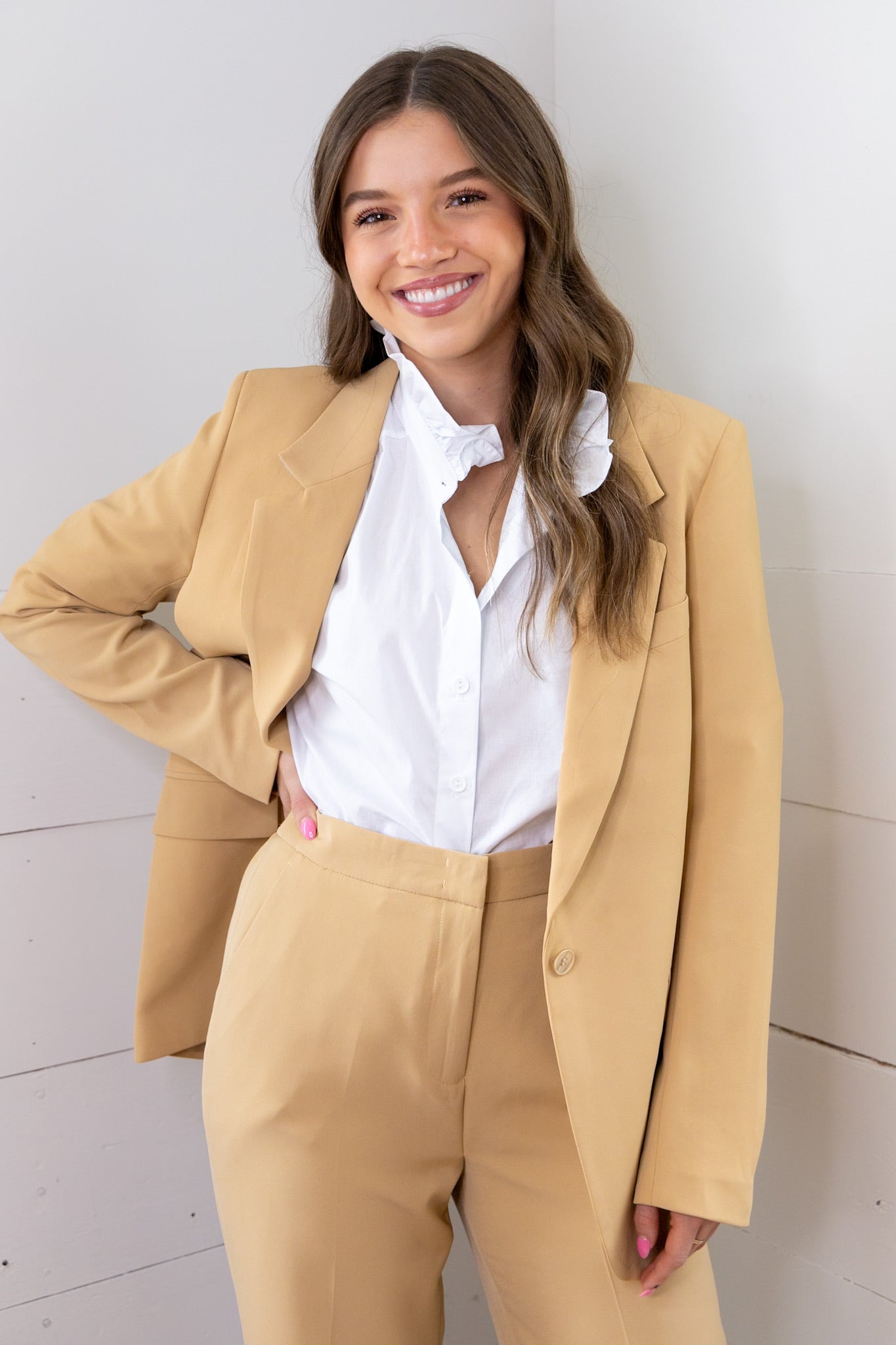 Baylor Long Sleeve Blazer- Buckwheat