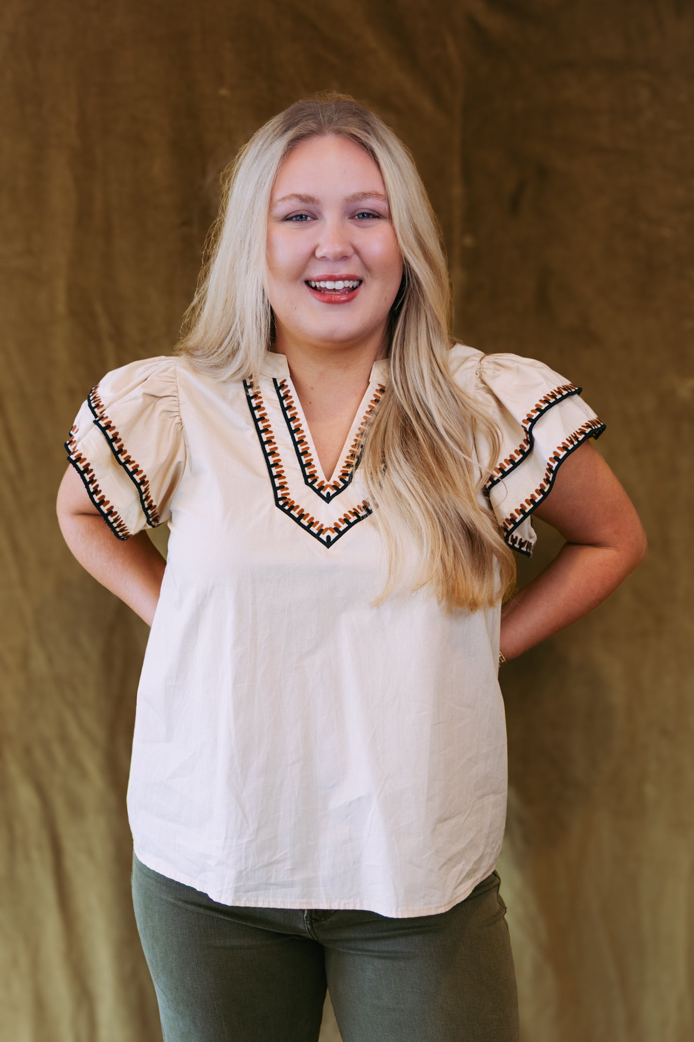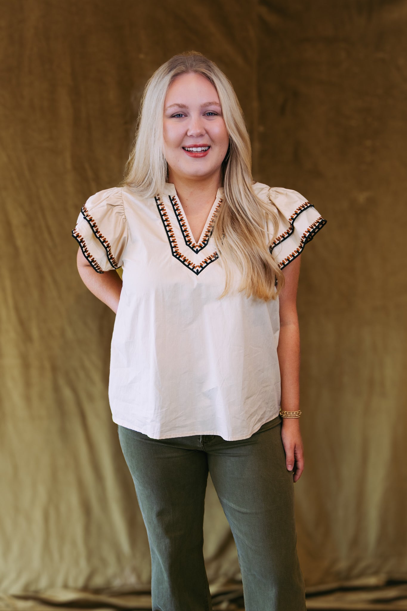 Connie Contrast Flutter Sleeve Top
