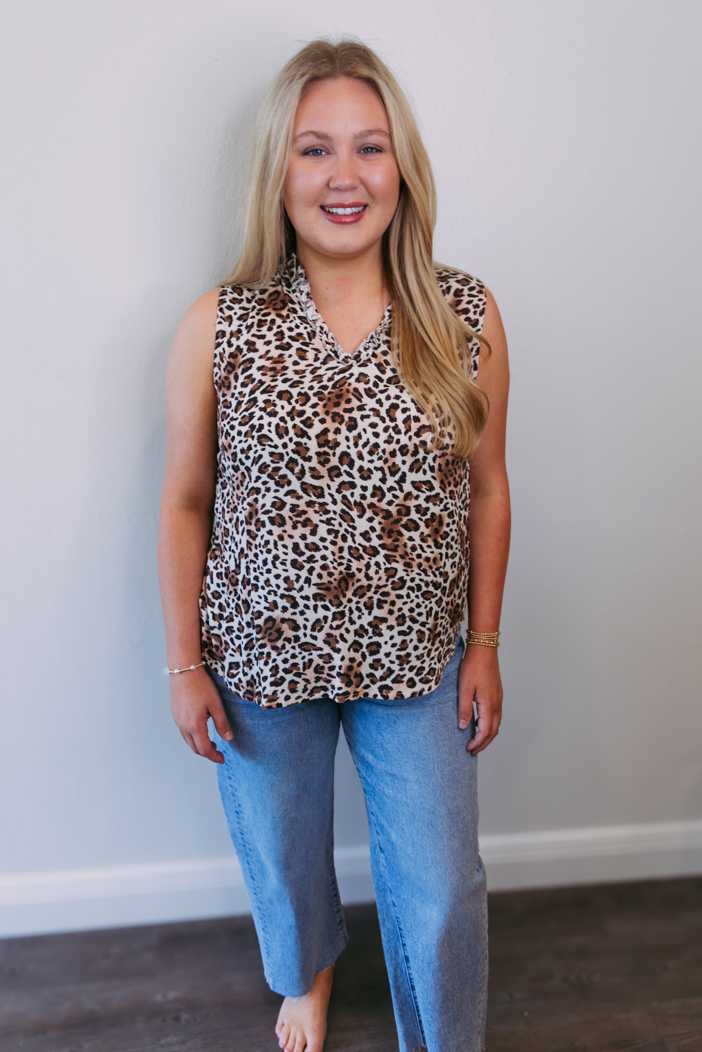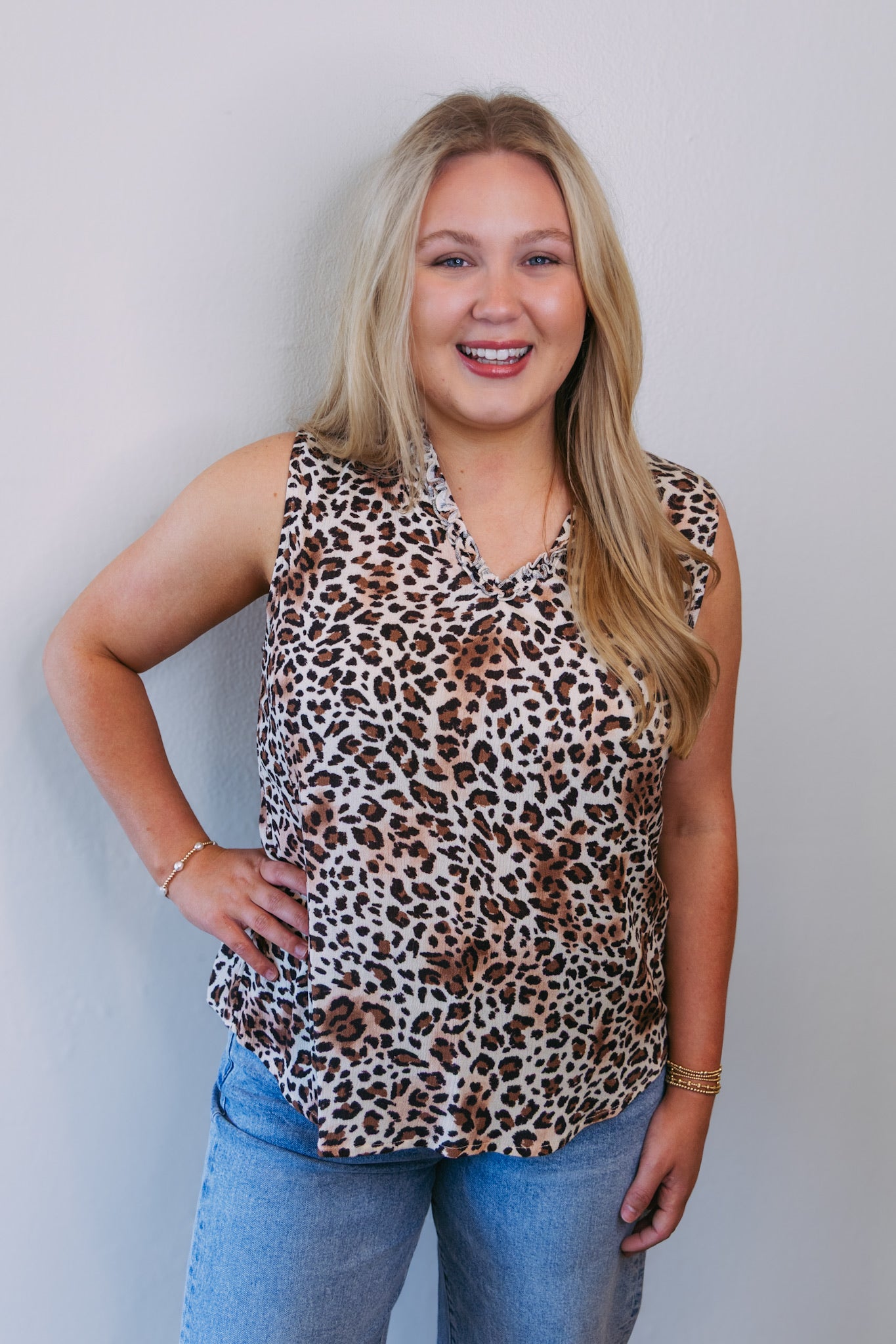 Double Lined V-Neck Tank - Bisque