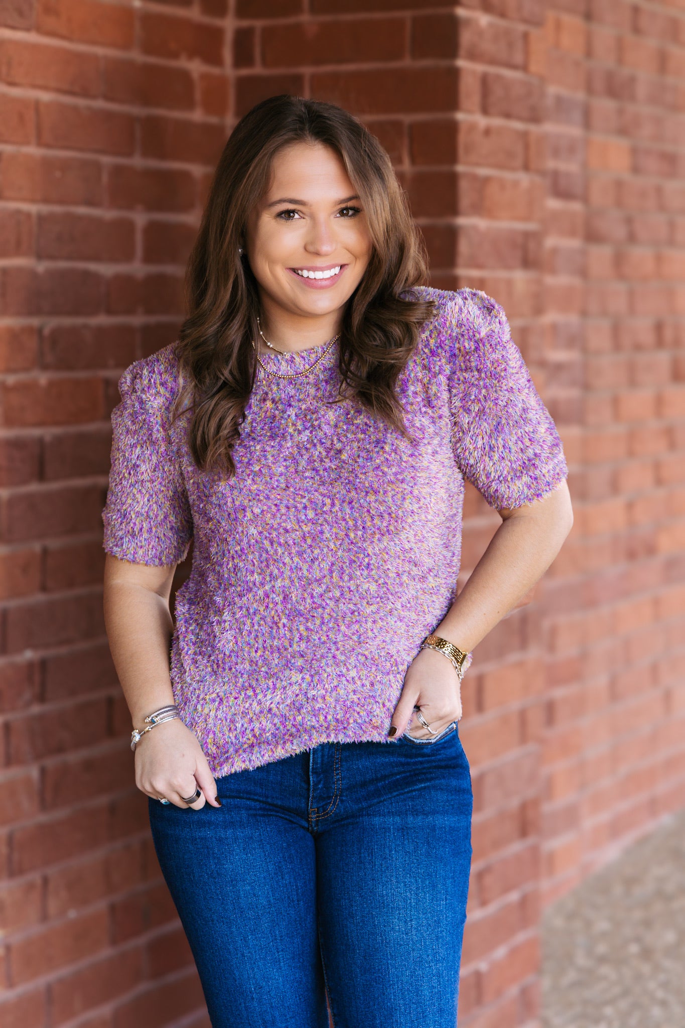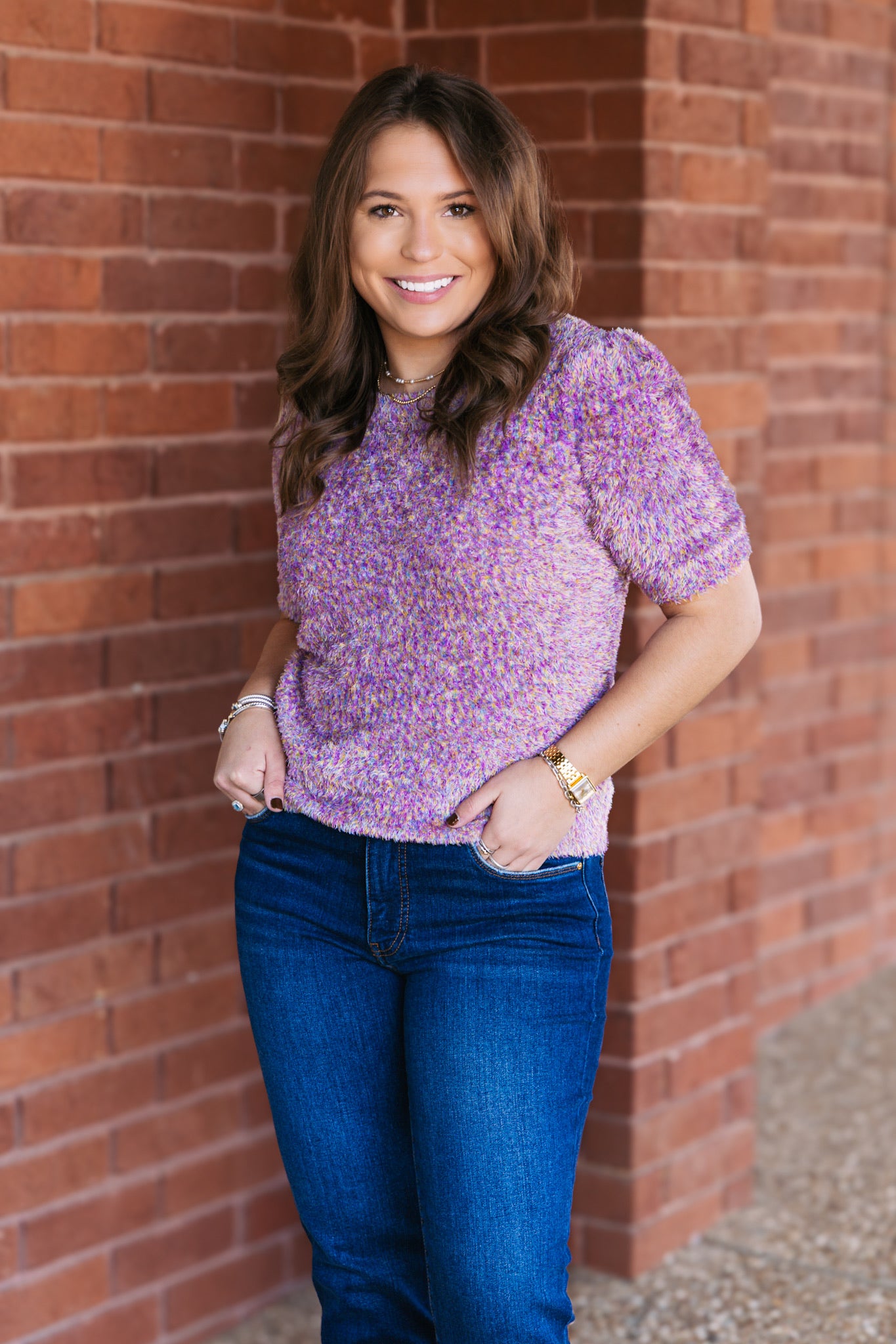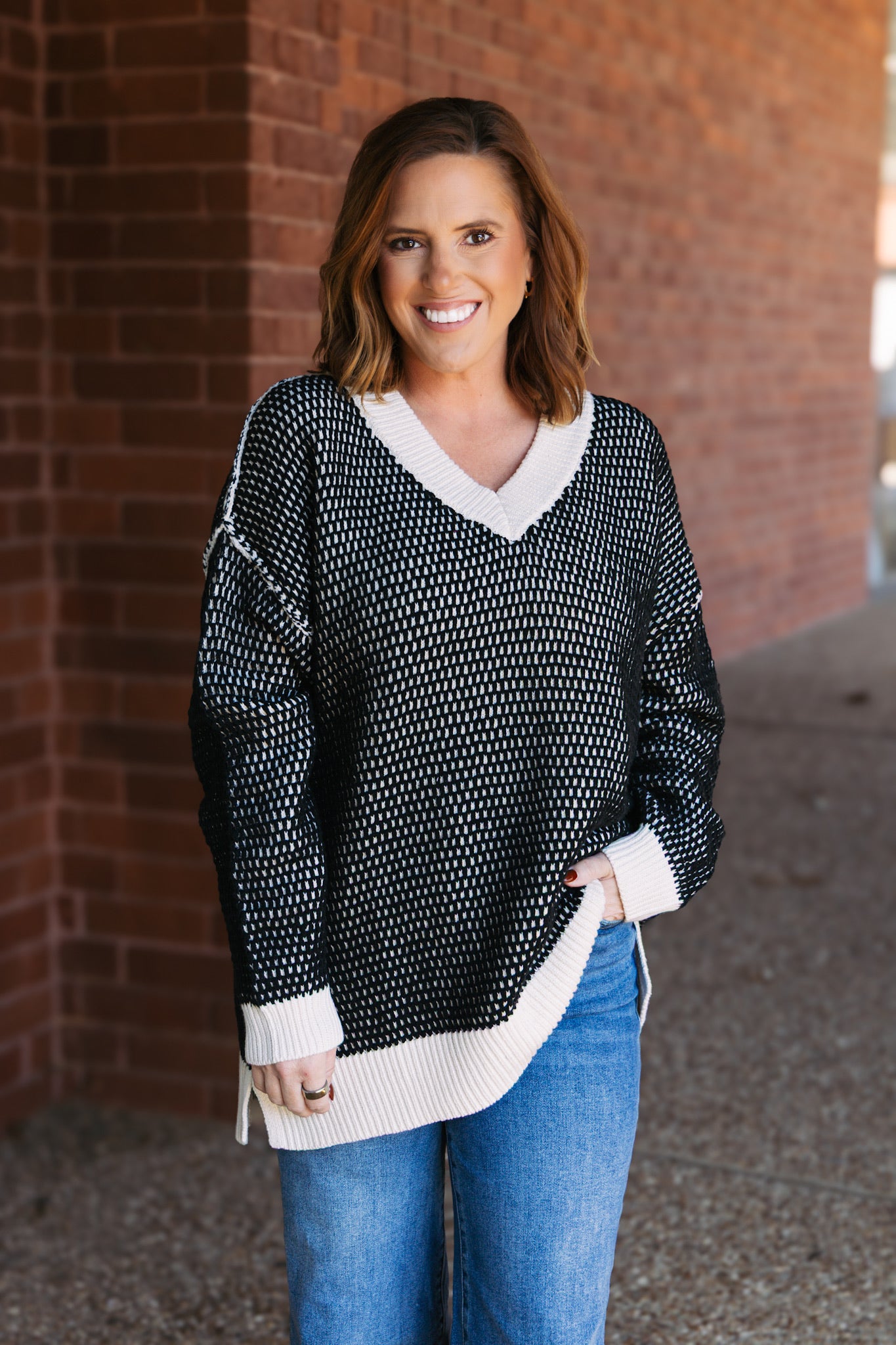 Washed Heather Grey Sweater W/ Denim Collar Cuff