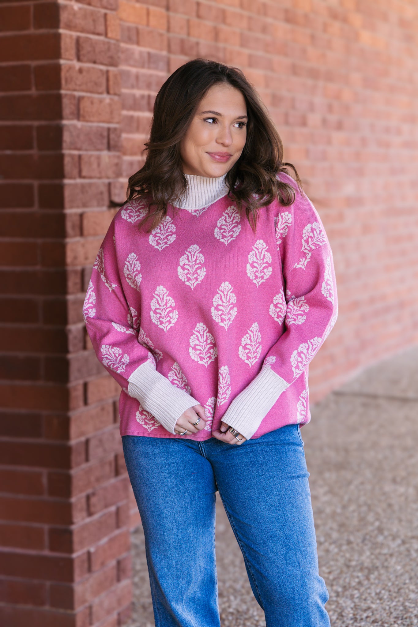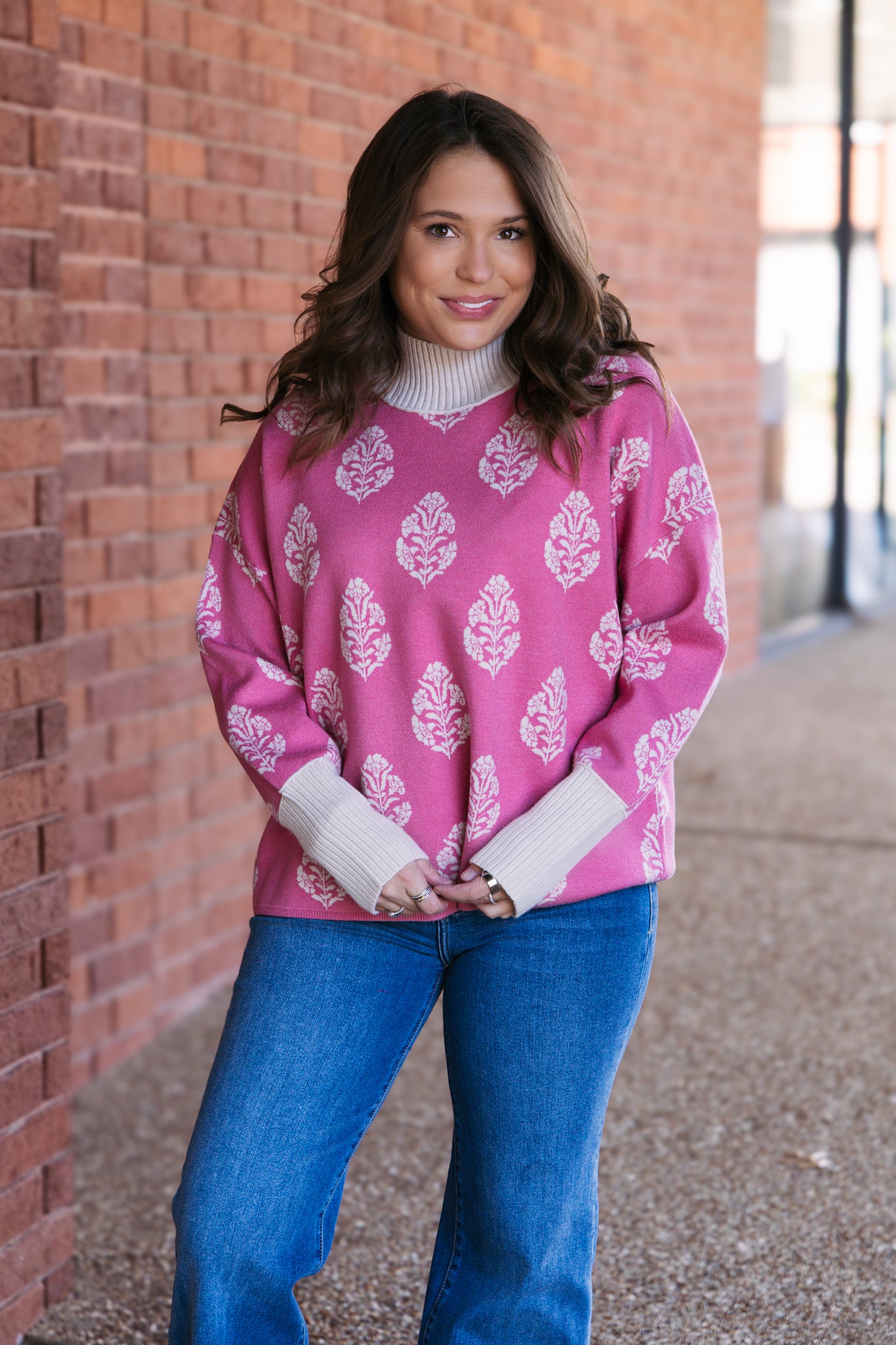 Bonnie Botanical Ribbed Knit Top - Dusty Pink