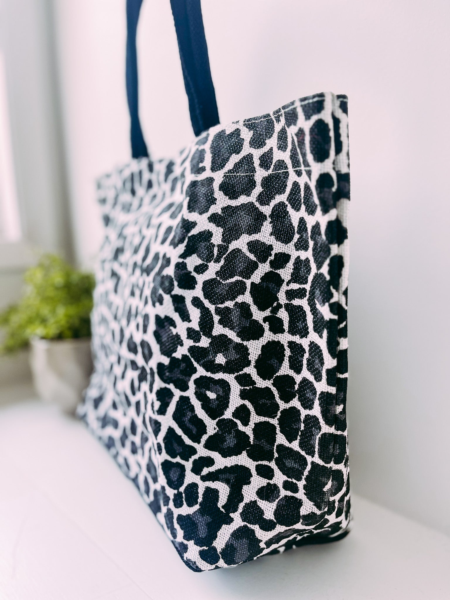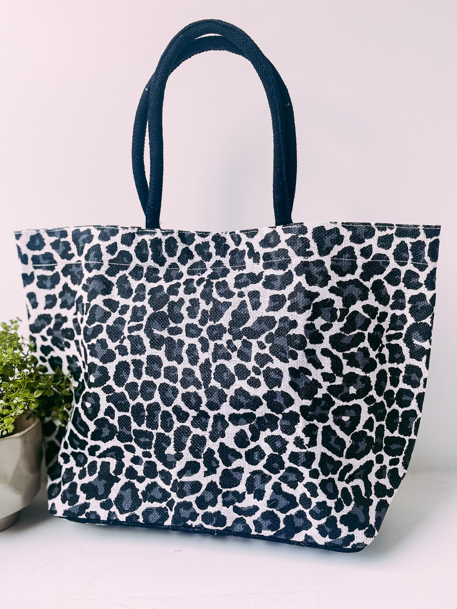 Mia Jute Tote Bag in Leopard- Black