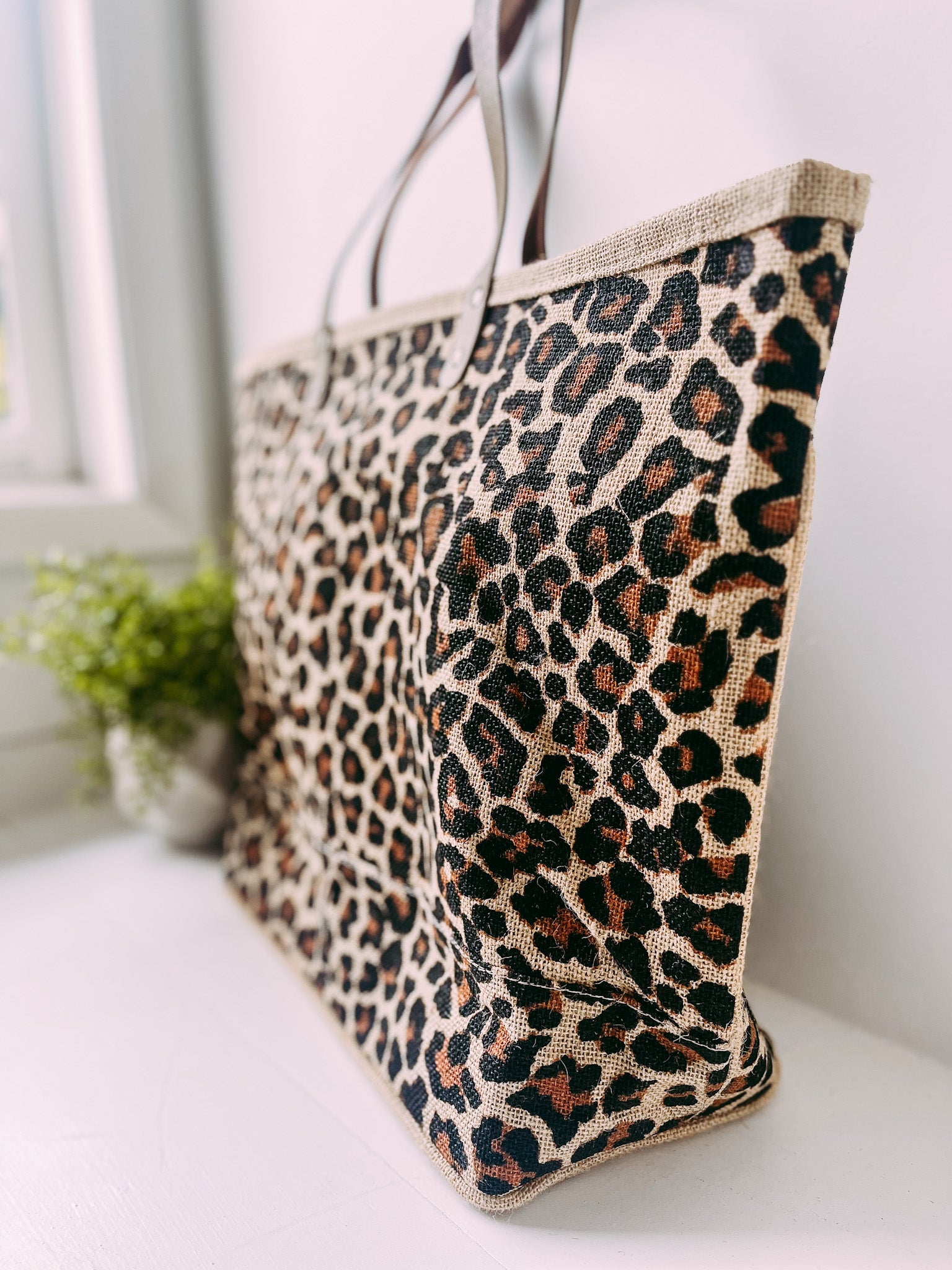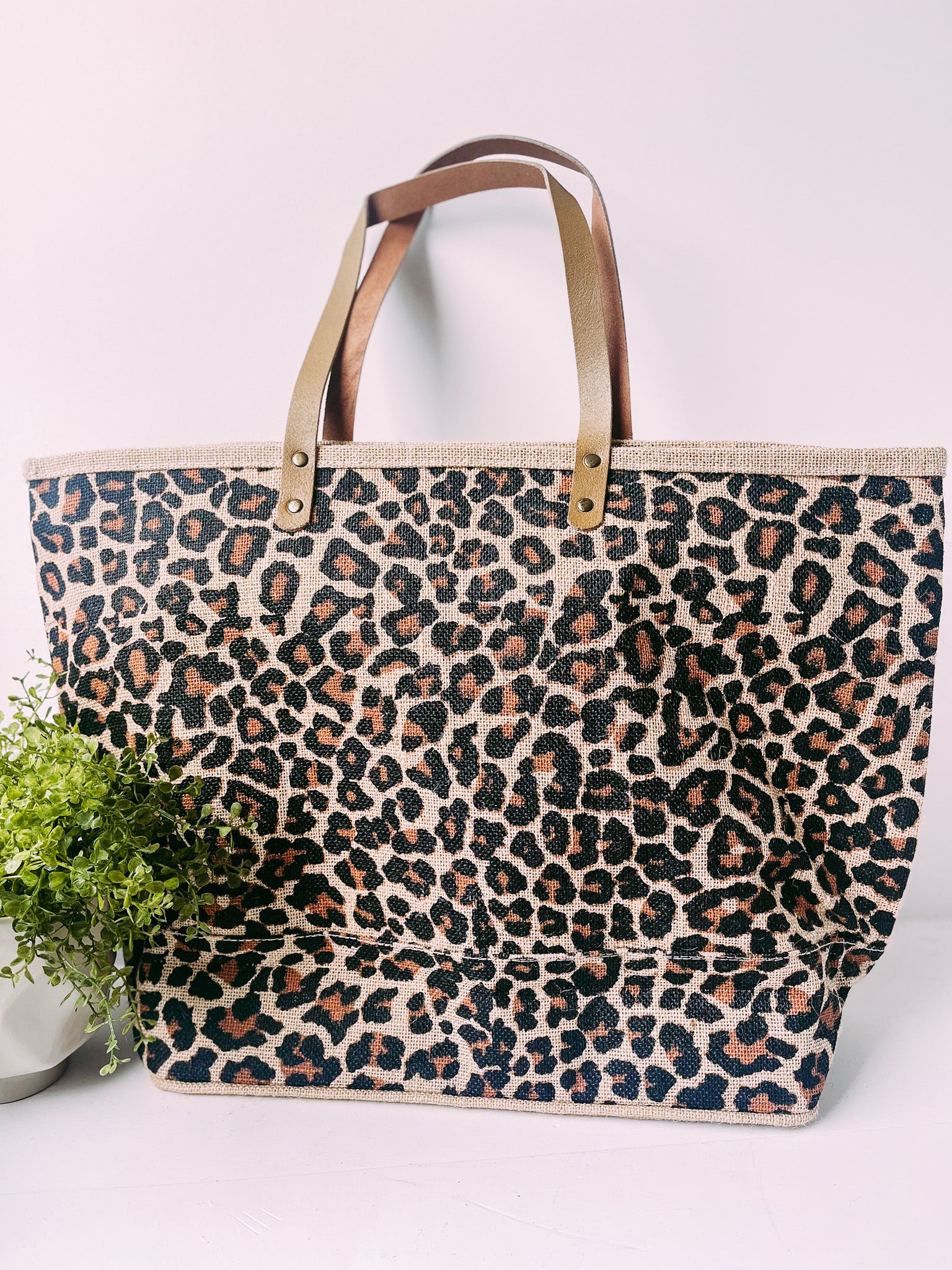 Classic Leopard Jute Bag- Natural