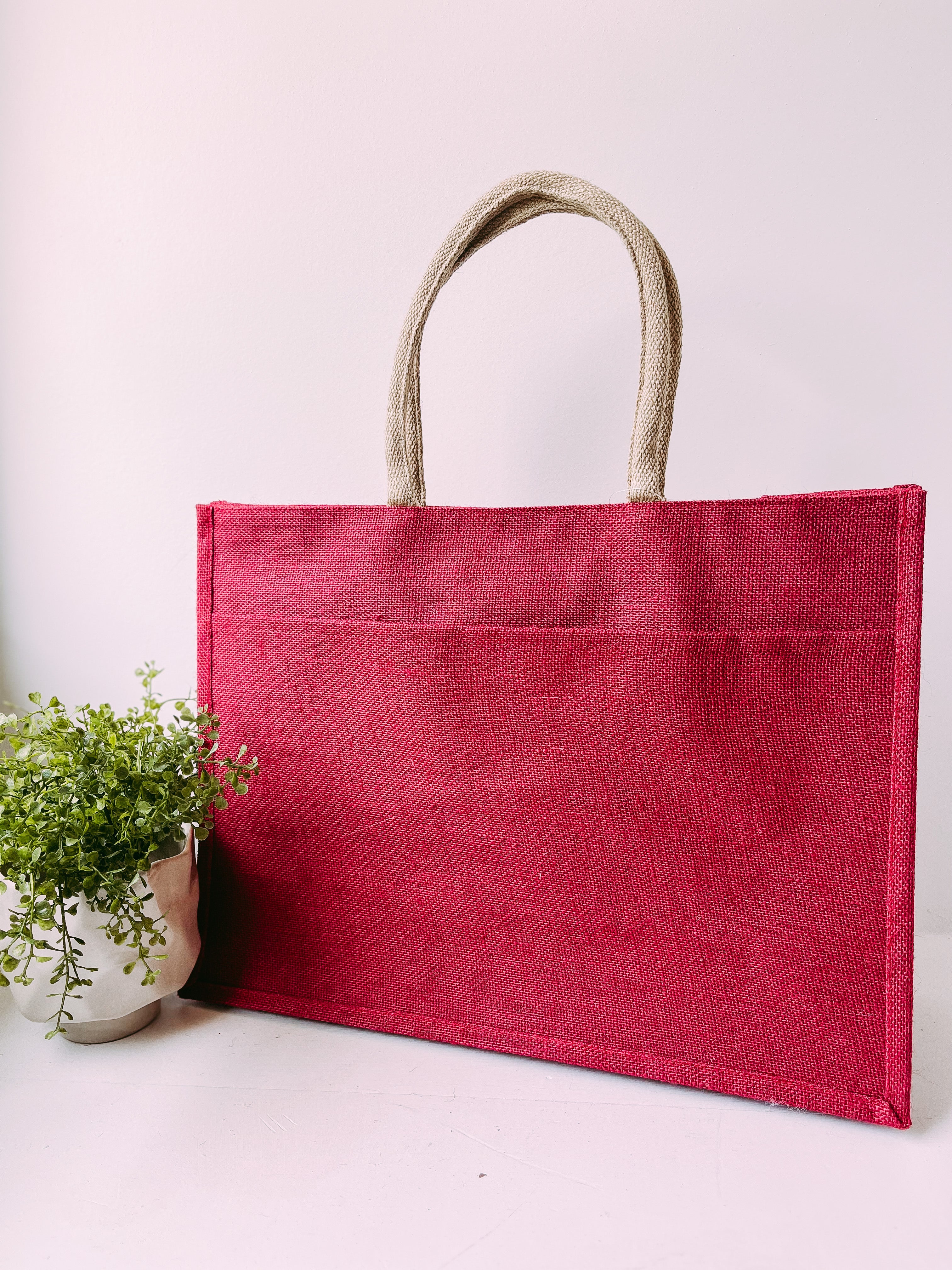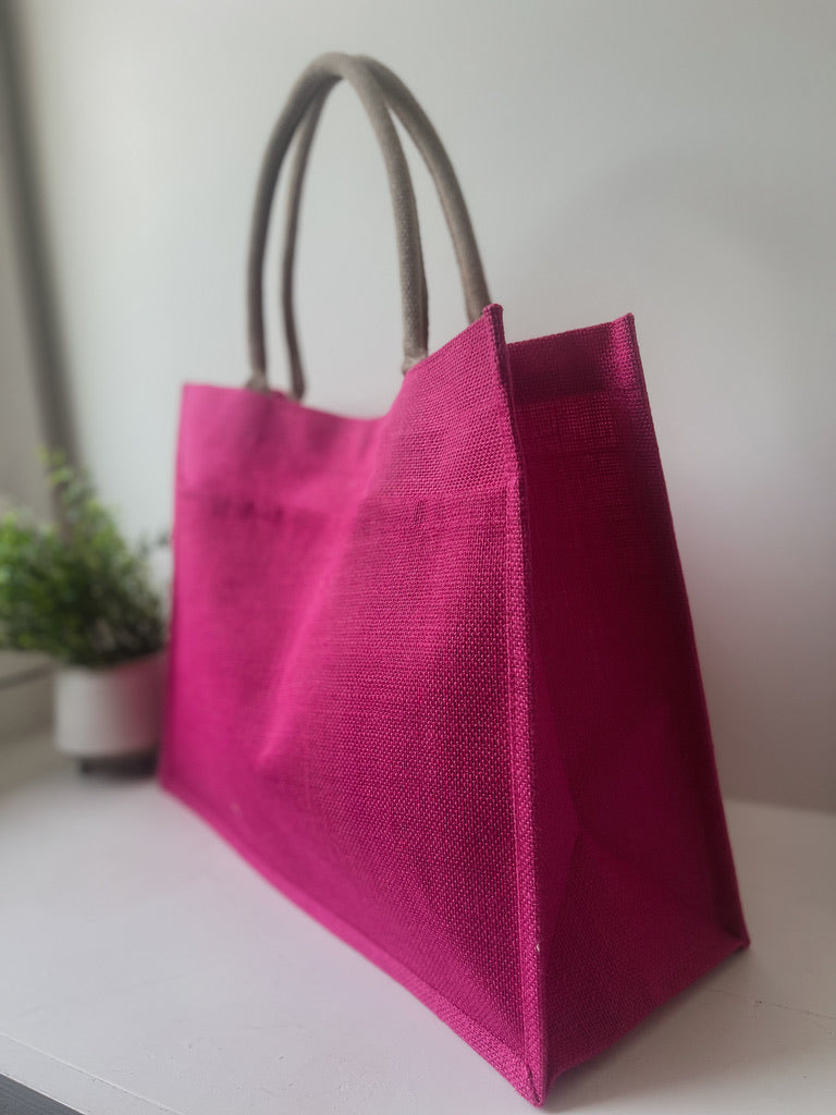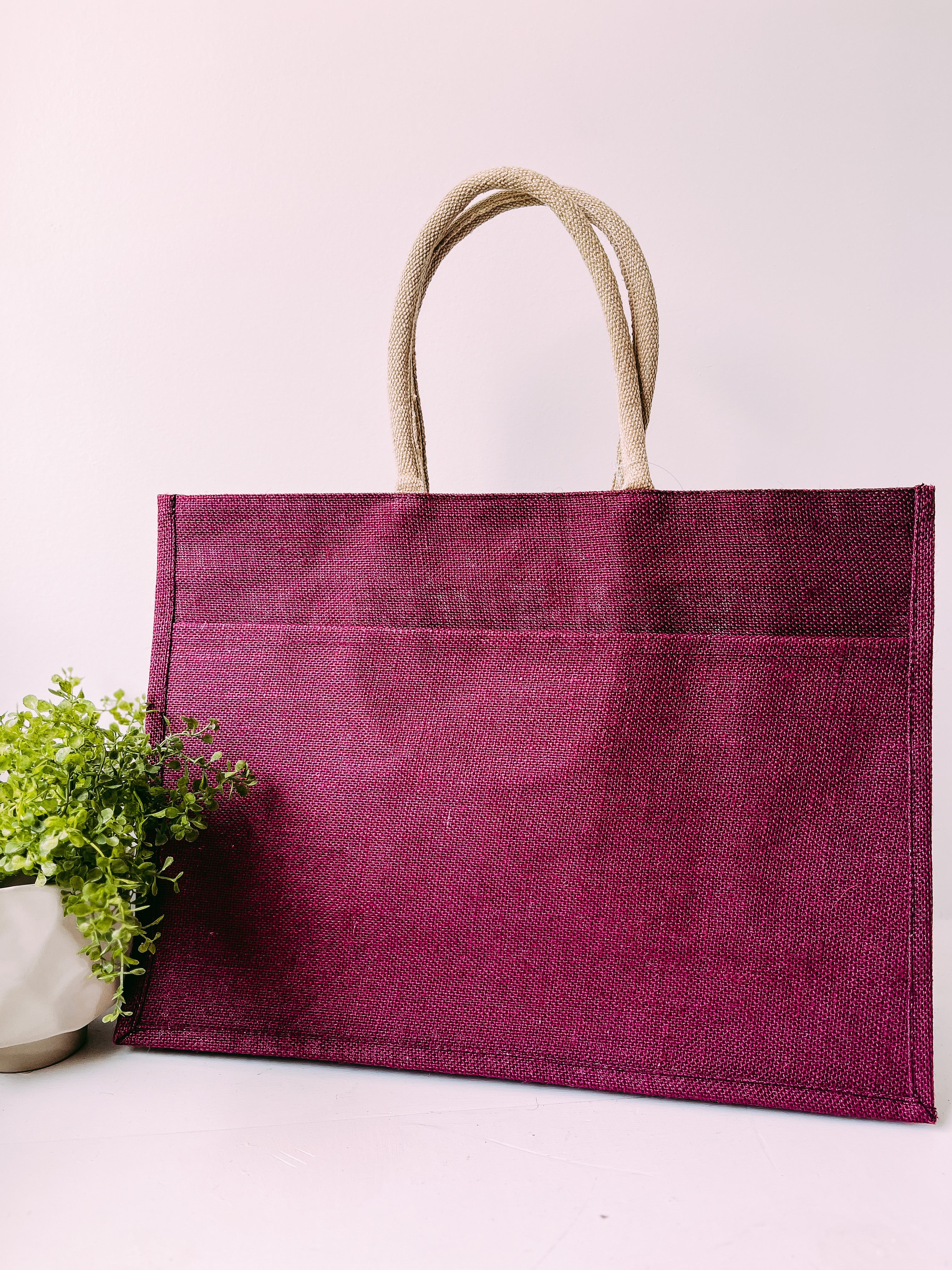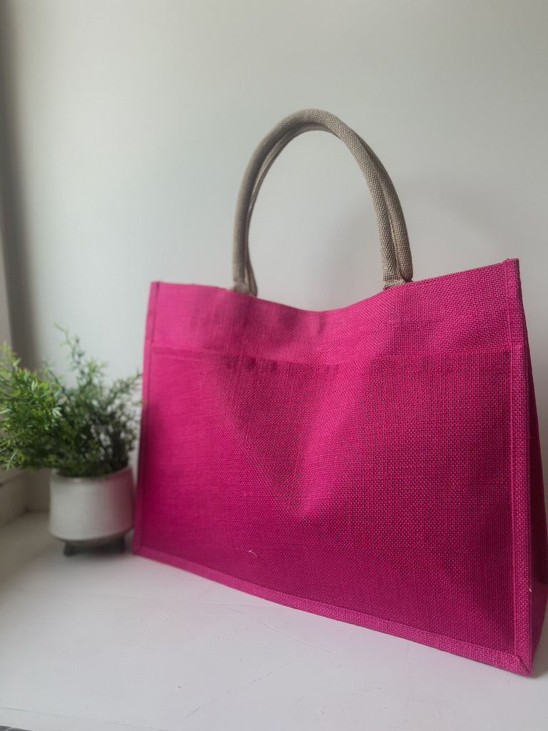 Jute Pocket Tote in Magenta