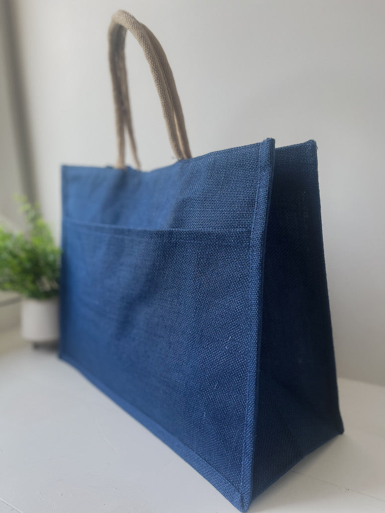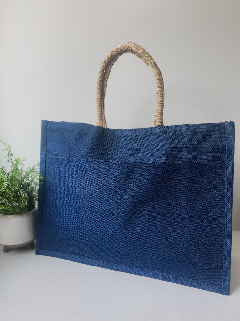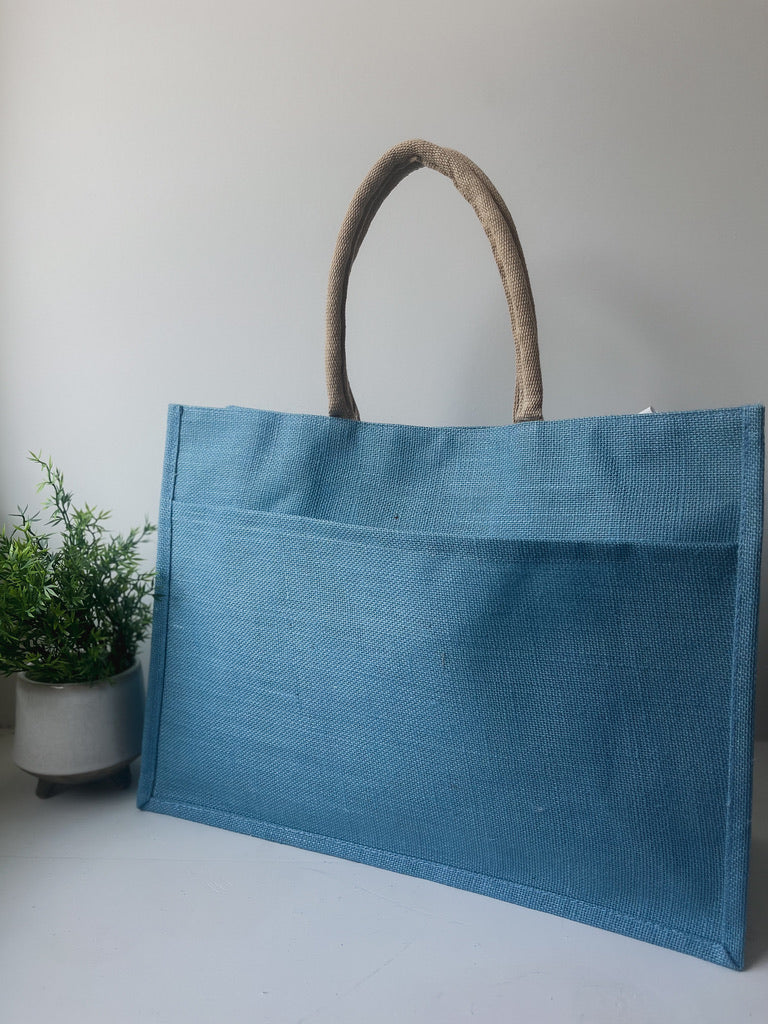 Jute Pocket Tote in Palace Blue