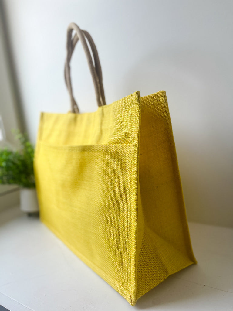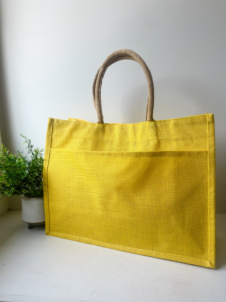 Jute Pocket Tote in Yellow