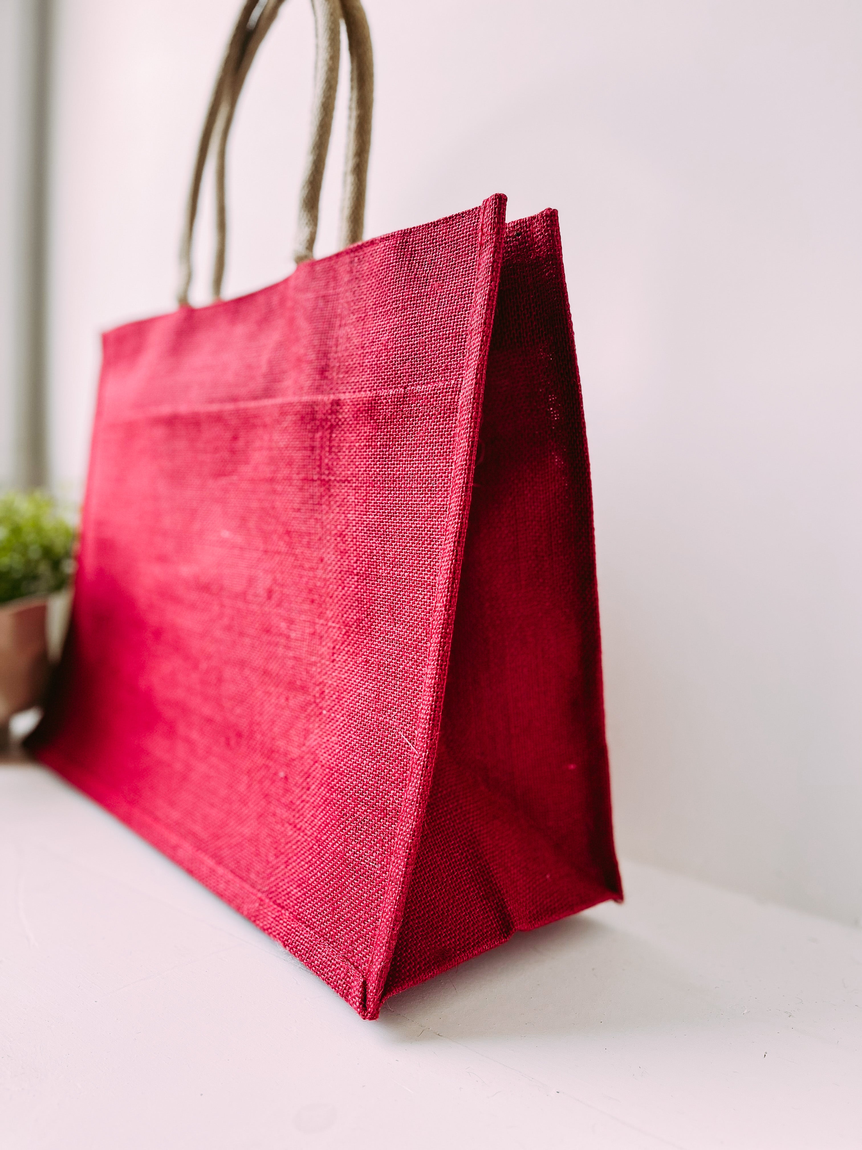 Jute Pocket Tote in Maroon