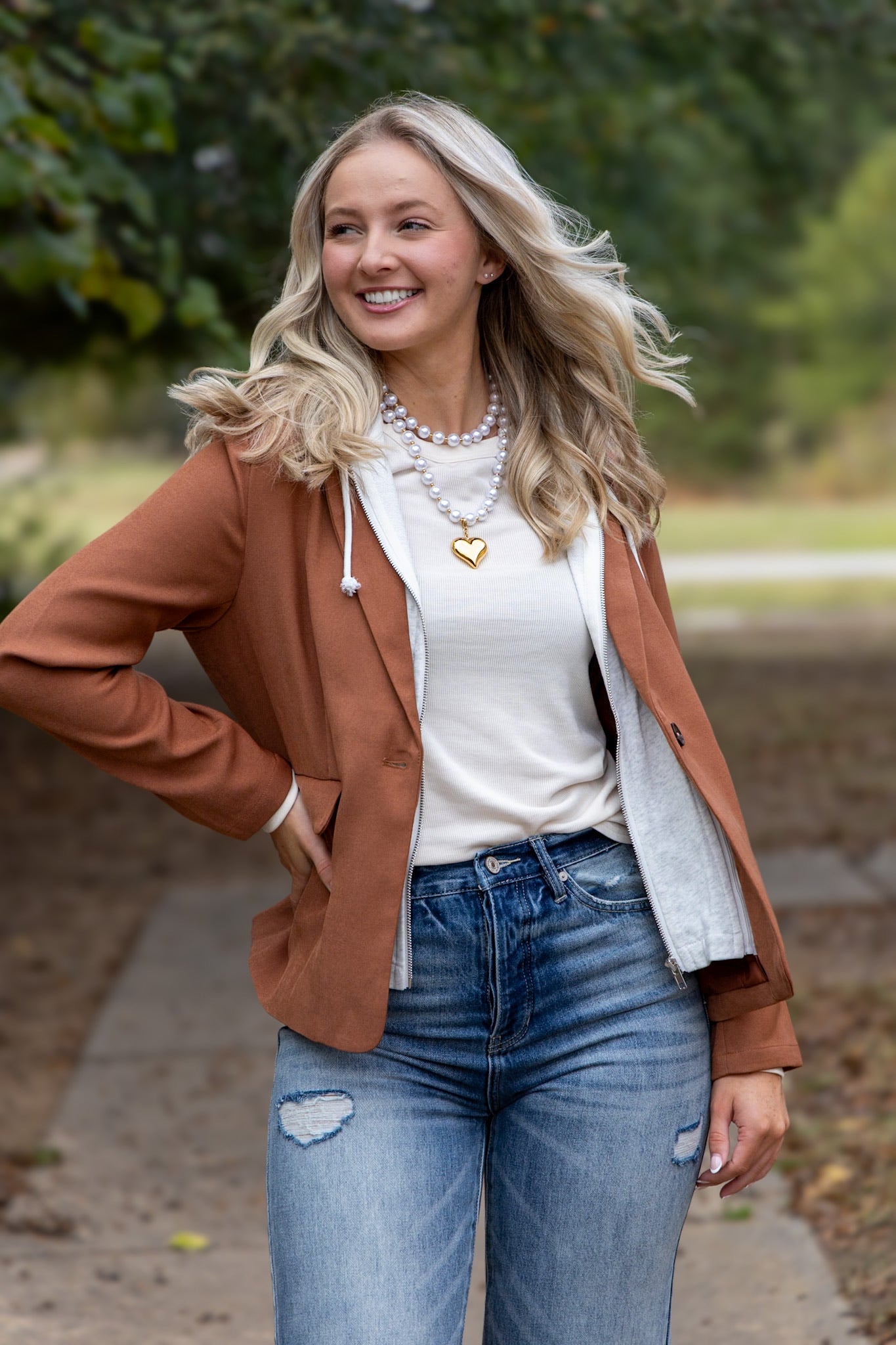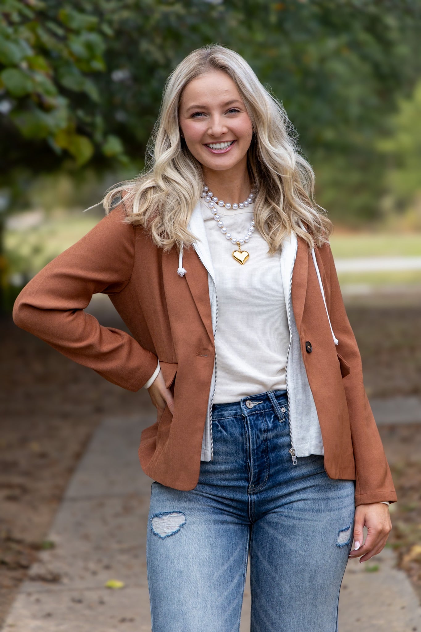 Drew Blazer With Sweatshirt Insert- Cinnamon